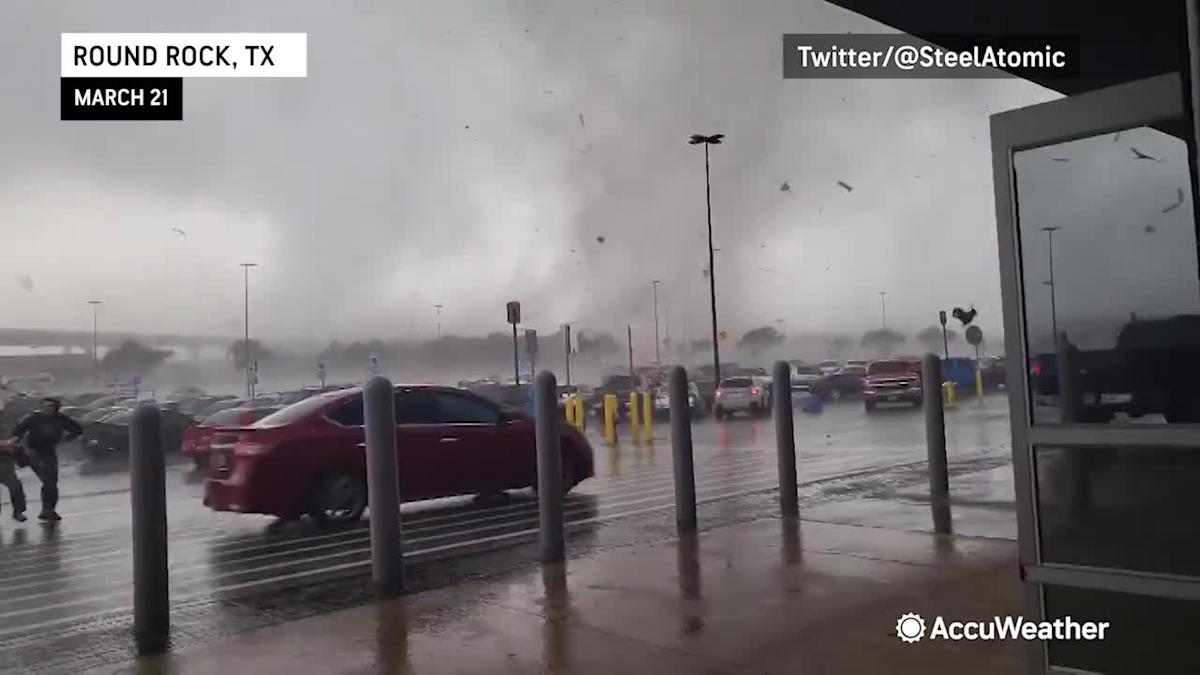 People sprint for a Walmart's doors as tornado rips through the parking lot