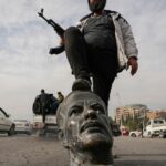 Part of a series of scenes from a collection titled “Nativity of Bethlehem 2024,” the biblical tableau shows figures of the holy family carved from olive wood while baby Jesus lies atop a keffiyeh, a style of scarf worn across the Middle East which has become a symbol of Palestinians’ resistance to the ongoing occupation by Israel.