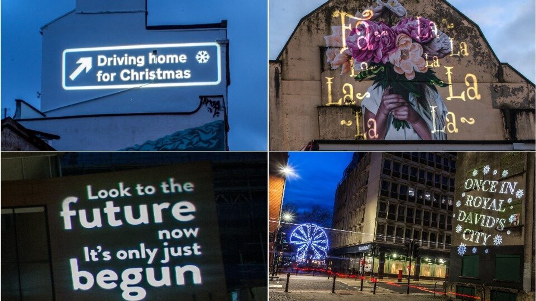 Festive song lyrics are lighting up buildings and streets in Bristol, southwest England, throughout December as a tonic to the coronavirus …
