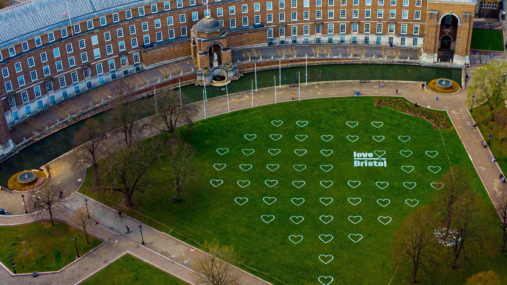 Parks in Bristol, southwest England, have been covered in hearts so people can socially distance within them as coronavirus restrictions …