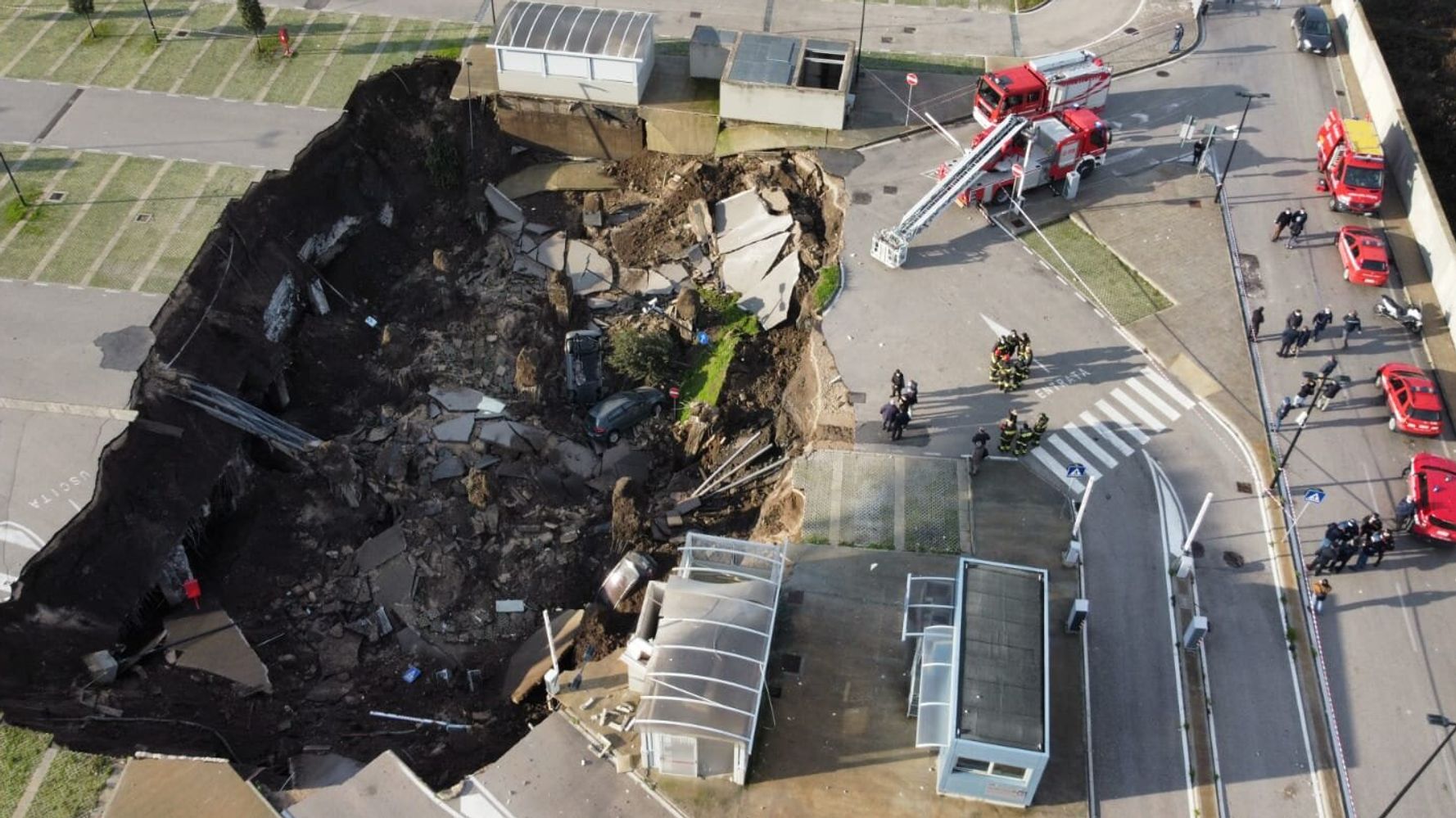 ROME (AP) — A giant sinkhole opened Friday in the parking lot of a hospital in Naples, Italy, forcing the …