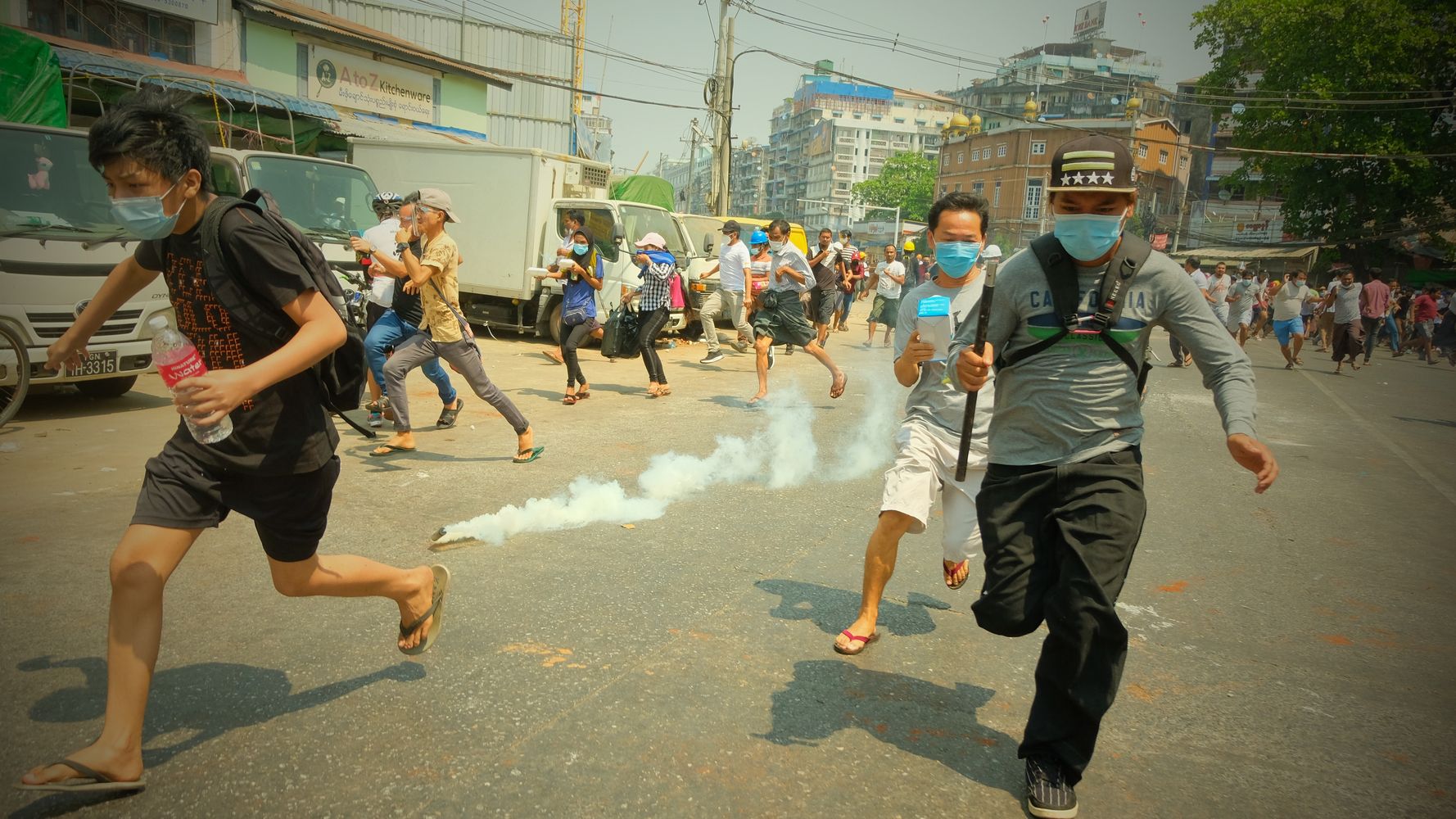 YANGON, Myanmar (AP) — Police in Myanmar’s biggest city fired tear gas Monday at defiant crowds who returned to the …